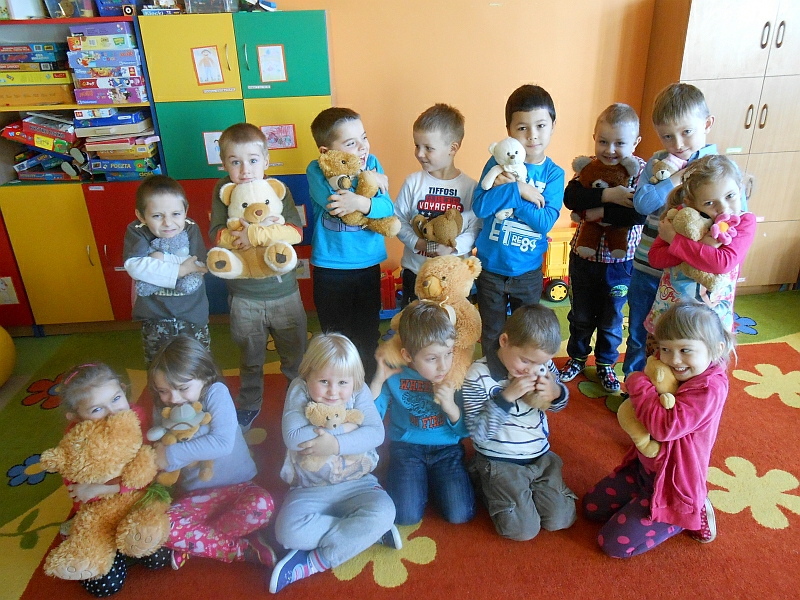 Tego dnia każde dziecko przyszło do przedszkola ze swoim małym lub dużym przyjacielem Misiem. Dzieci, opowiadały o swoich maskotkach, słuchały czytanych przez panią fragmentów książek o niedźwiadkach, recytowały wierszyk „Miś” oraz brały aktywny udział w zabawie. Bawiły się w starego niedźwiedzia oraz tańczyły z misiami w rytm piosenki „Pokochaj pluszowego misia". Ten dzień wywołał u dzieci wiele uśmiechów i radości. Na zakończenie spotkania każde dziecko dostało słodki upominek i kolorowankę.