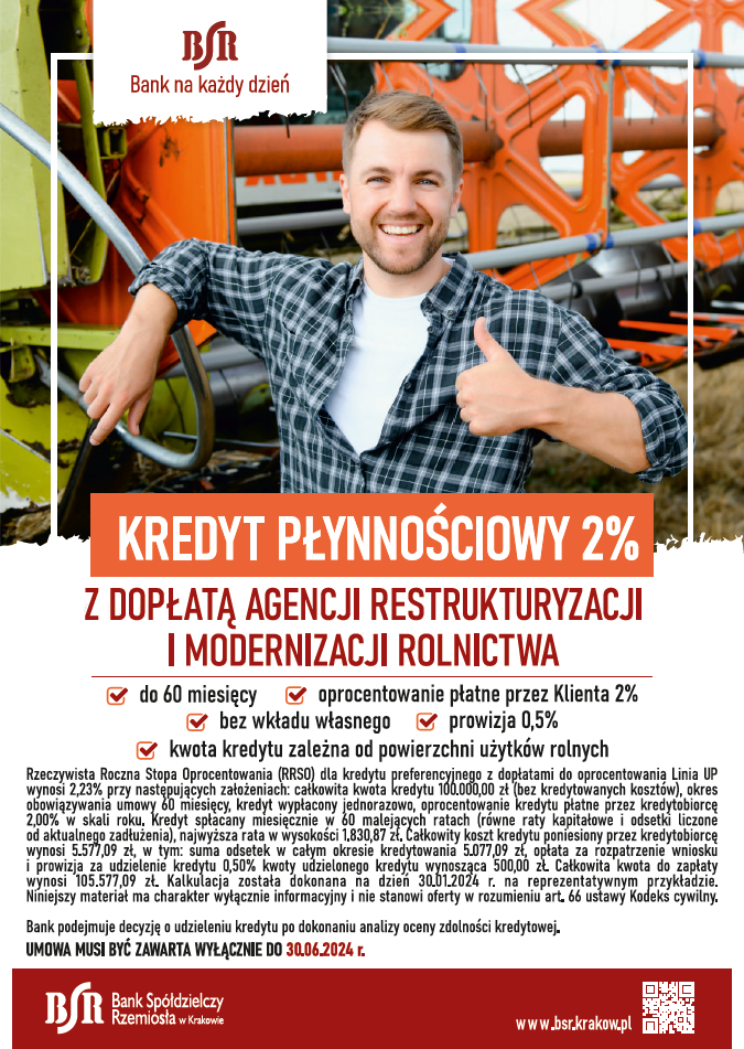 Kredyt płynnościowy 2% z dopłatą Agencji Restrukturyzacji i Modernizacji Rolnictwa
