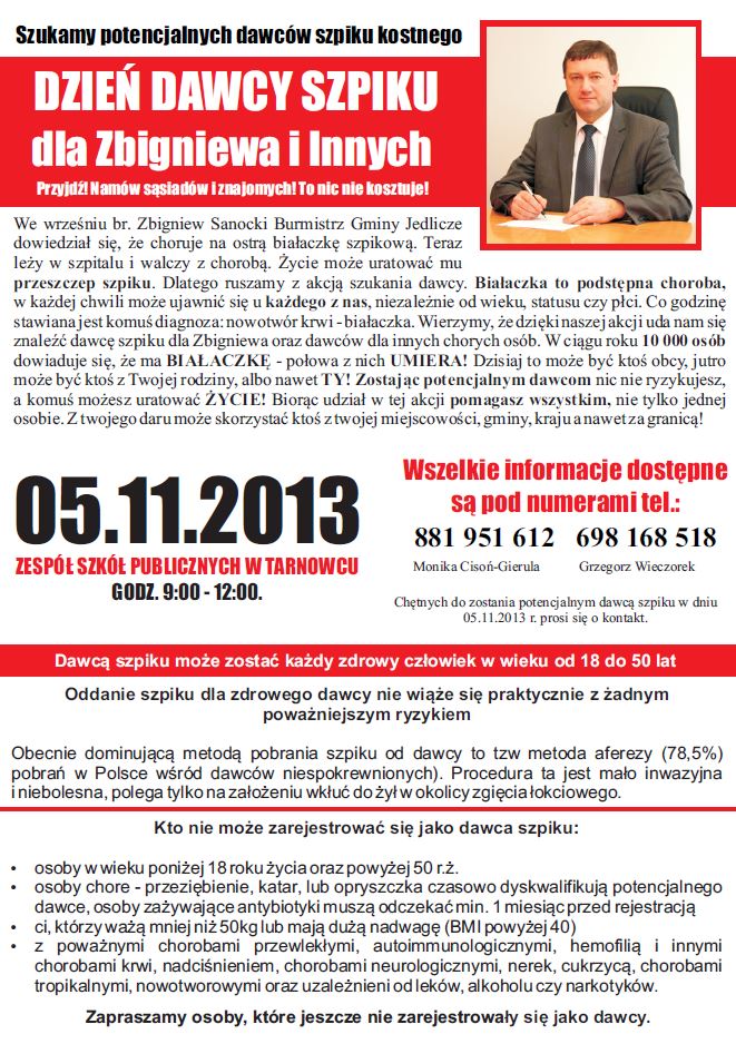 Dzień dawcy szpiku kostnego dla Zbigniewa i innych