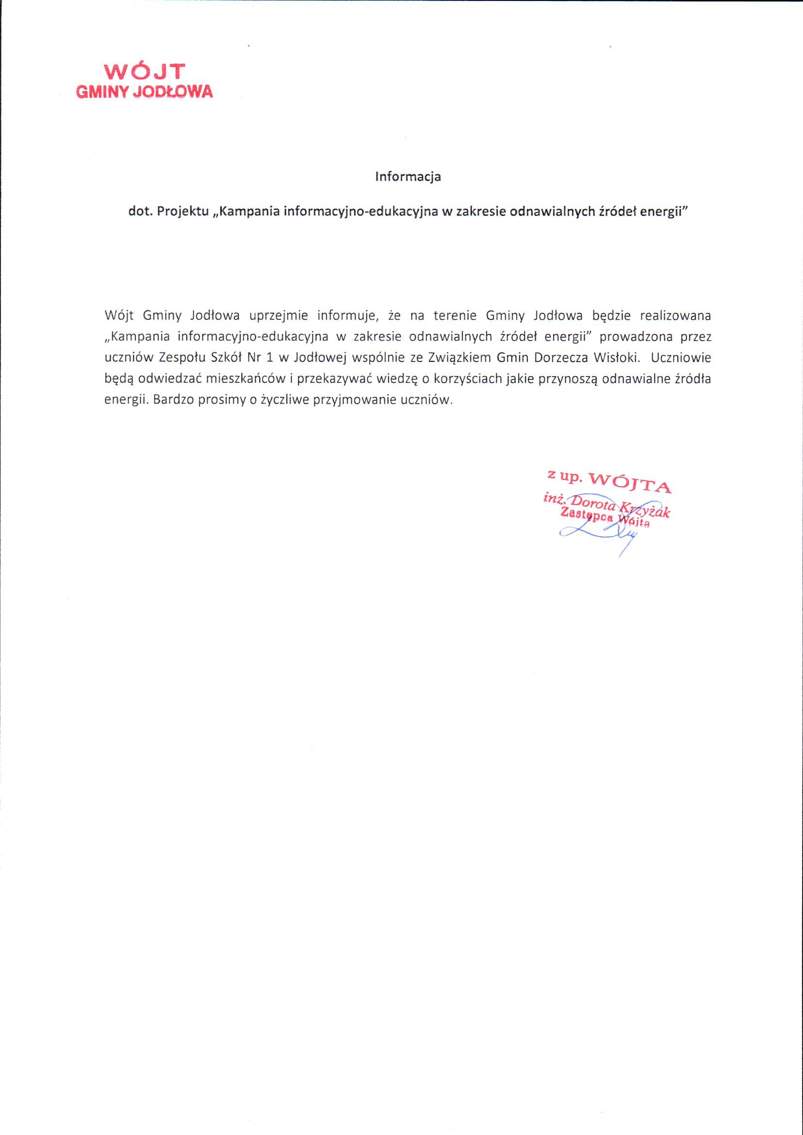 Wójt Gminy Jodłowa uprzejmie informuje, że ...