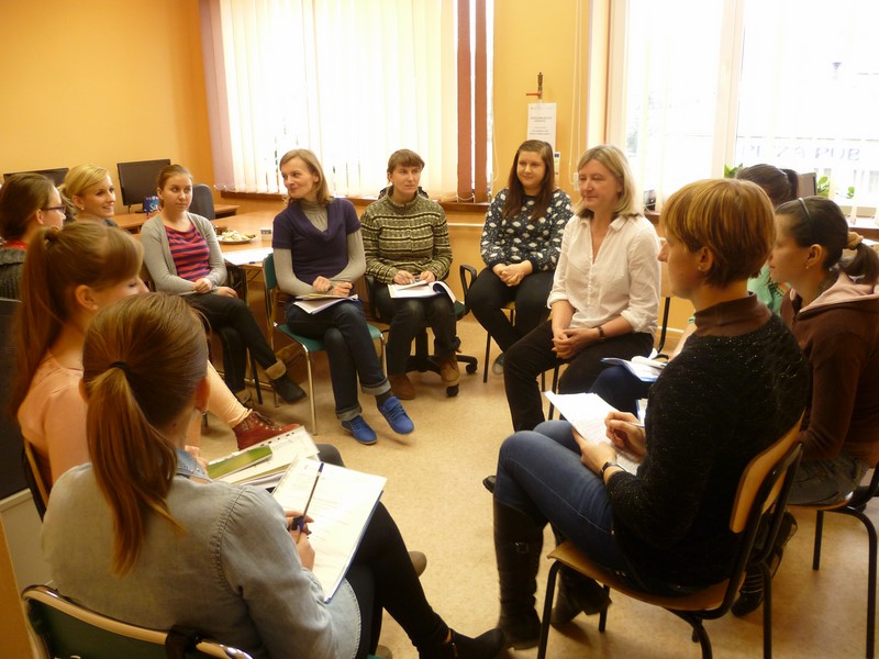 - Grupowe doradztwo zawodowe, którego głównym założeniem było nabycie przez uczestników projektu umiejętności poruszania się po rynku pracy. Zajęcia prowadzone były w formie warsztatów przez doradcę zawodowego. Uczestnicy nauczyli się pisać CV i list motywacyjny, analizowano przykładowe oferty pracy oraz redagowano w oparciu o nie list motywacyjny, „ćwiczono” autoprezentację podczas rozmowy kwalifikacyjnej. Ponadto uczono się rozpoznawania rynku pracy, określenie swoich możliwości, poznawano nowe i skuteczne techniki poszukiwania pracy, sposoby poszukiwania informacji o rynku pracy, ofert zatrudnienia i możliwości szkoleniowych.
