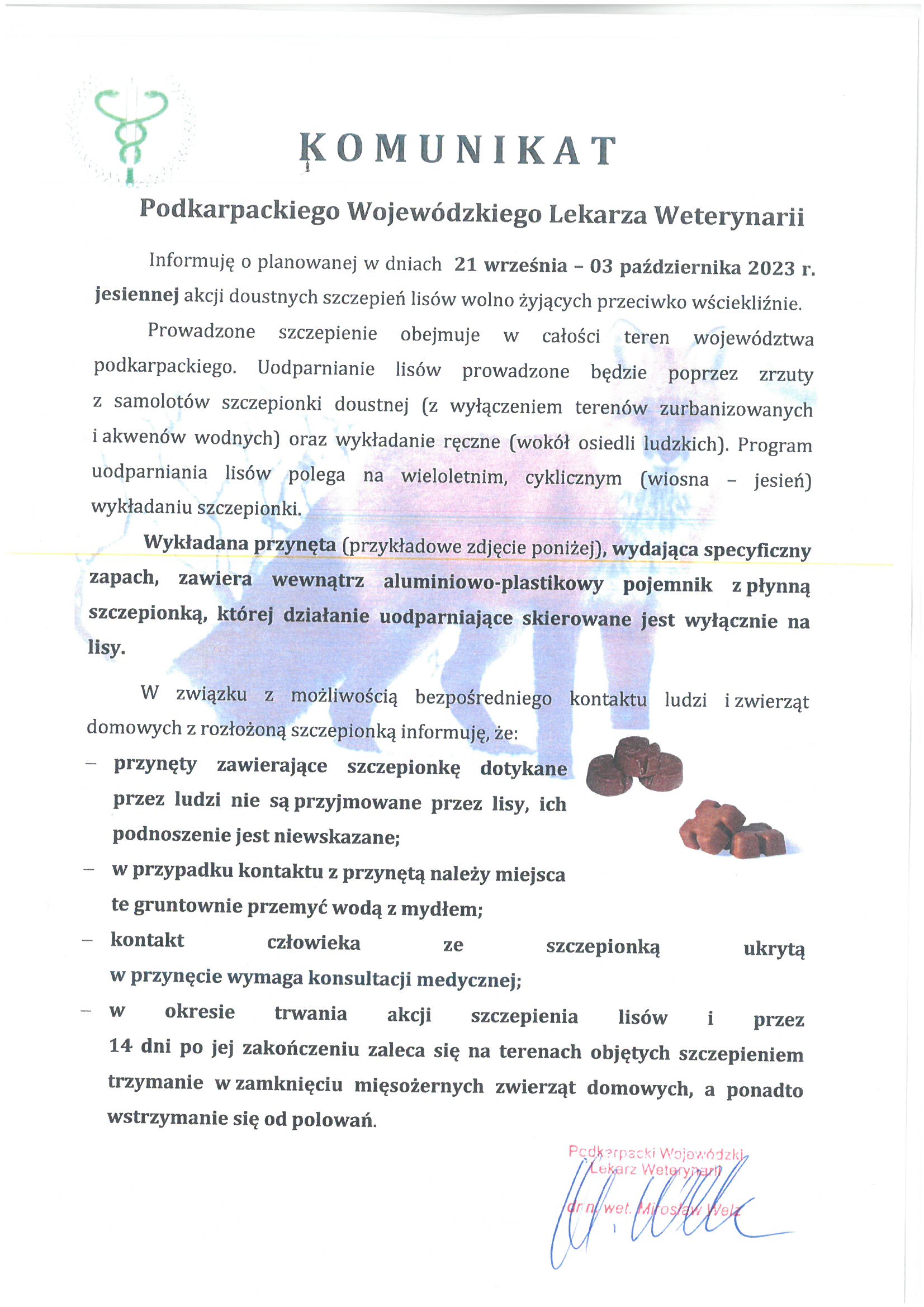 Komunikat o jesiennej akcji doustnych szczepień lisów