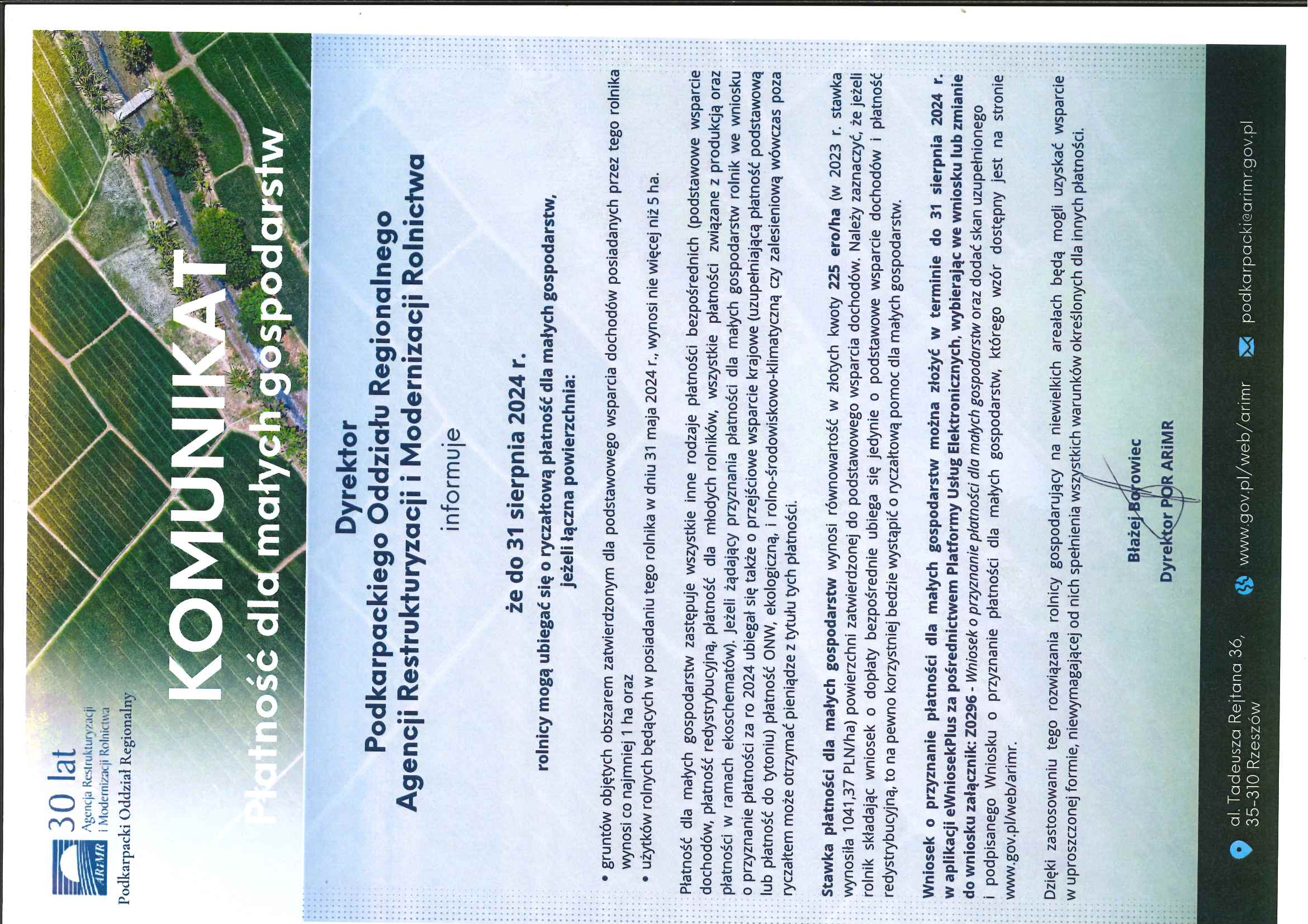 Komunikat - Płatność dla małych gospodarstw