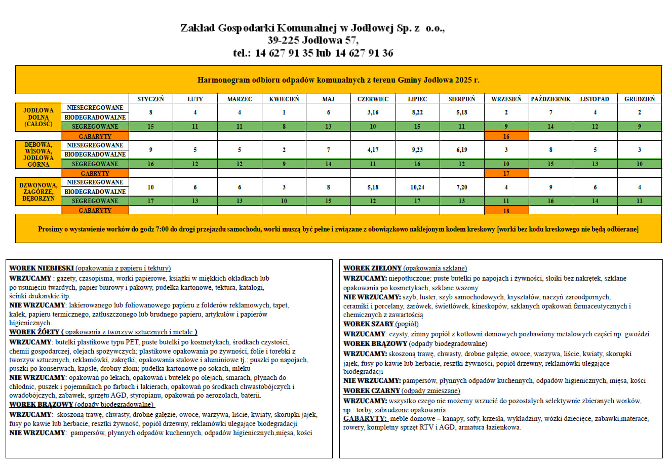 HARMONOGRAM ODBIORU ODPADÓW NA 2025 rok