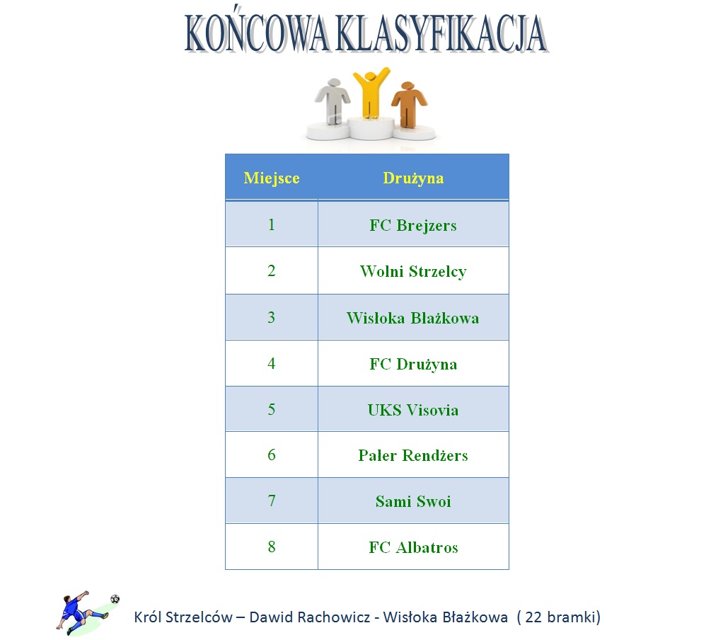 W meczu o I miejsce spotkały się 2 drużyny które w wcześniejszych fazach turnieju nie poniosły żadnej porażki, FC Brejzers oraz Wolni Strzelcy.