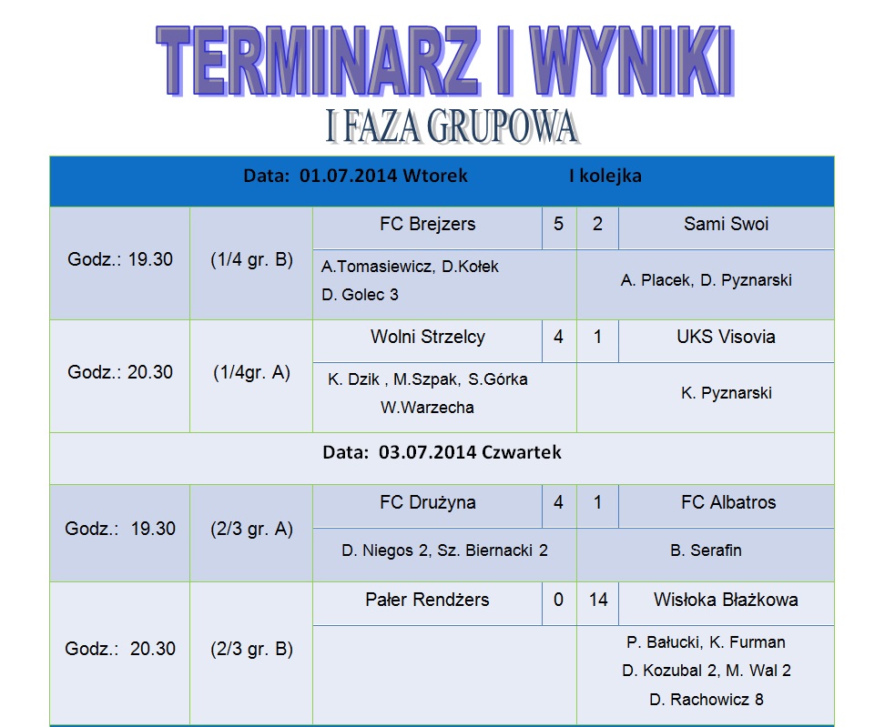 Mecz ten zasługiwał na wielki finał, dostarczył pięknych emocji dla kibiców licznie zgromadzonych na Orliku. W regulaminowym czasie gry bliżej zwycięstwa była drużyna FC Brejzers która to prowadziła 3:1, ale drużyna Wolnych strzelców walczyła do ostatniego gwizdka i doprowadziła do remisu 3:3 , a później strzelając bramkę w dogrywce na 4:3 była blisko końcowego triumfu. . Ale znowu w końcówce dogrywki FC Brejzers pokazała charakter doprowadzając do rzutów karnych, w których miała więcej szczęścia sportowego, wygrywając 5:3.